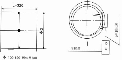 4、在排煙閥門(口)至遠程控制機構的相對位置輔好套管,套管的一端緊靠排煙閥(口),另一端緊靠遠程控制機構,然后將鋼纜繩穿入套管,將纜繩的一端穿進遠程控制機構并穿過導線軸繞在卷筒上,至少繞三圈、將多余的部分剪去。