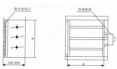 5、多葉排煙口安裝時,先將鋁合金風口拆去,將閥體砌入墻內,注意不能讓閥體變形,四周用水泥抹平,或者用螺栓固定在墻上,再將鋁合金風口裝上。